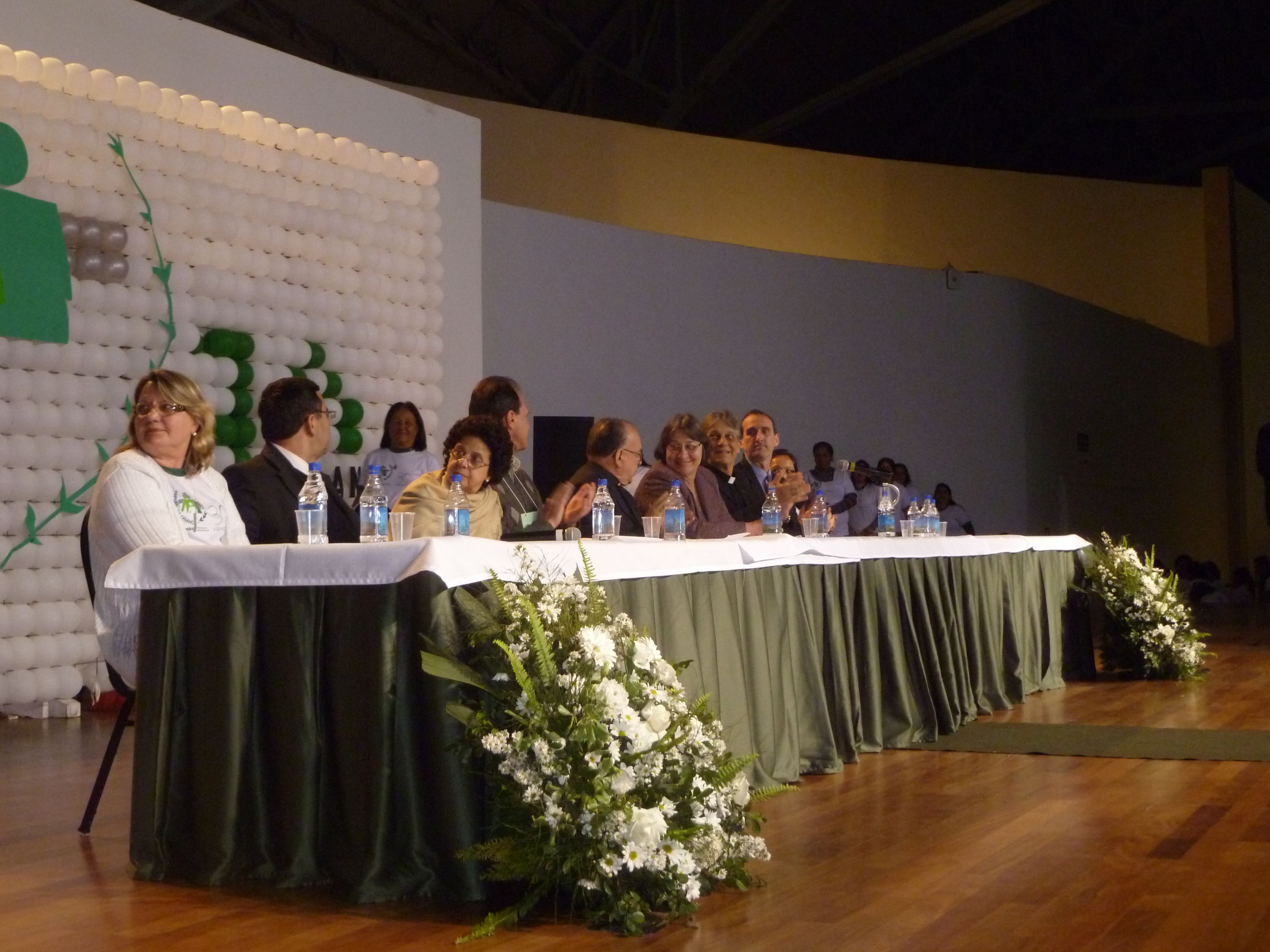 Também Sonia Maria Ferreira Baíse, coordenadora da Pastoral da Criança em Florestópolis, e a líder Maria Aparecida de Nogueira Senhorini, representando a comitiva de líderes pioneiras que vieram da cidade berço da Pastoral da Criança. Sílvio Santana, Ana Ruth Góis e Marta Eire, integrantes do Conselho Diretor da Pastoral da Criança.
